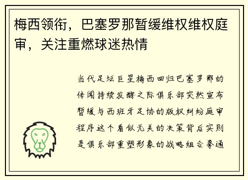 梅西夺冠续写传奇,目标成就第48冠!在这篇文章中,我们将全面解析梅西的辉煌历程,从多个角度呈现他的足球传奇。首先,我们将从他的职业生涯和成就入手,探讨他是如何跻身足球史上最伟大球员之列的。其次,我们将深入分析梅西的技术特点和风格,揭示他在球场上的独特魅力。然后,我们将关注他的领袖魅力和团队合作精神,解密他如何带领球队赢得荣誉。最后,我们将展望未来,探讨梅西在足球领域中的持续影响力和不懈追求,目标锁...